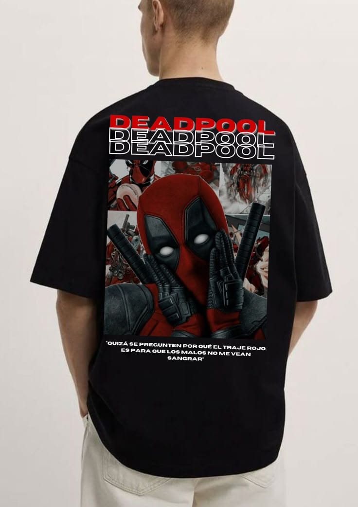 - The Maypra Deadpool Graphic Oversized T-Shirt is a versatile streetwear essential that anchors any casual outfit with personality. The oversized silhouette pairs perfectly with slim or tapered bottoms to create balanced proportions. Style it with light-wash denim jeans like shown in the image for a classic casual look, or go for black skinny jeans or dark joggers for a more urban aesthetic.